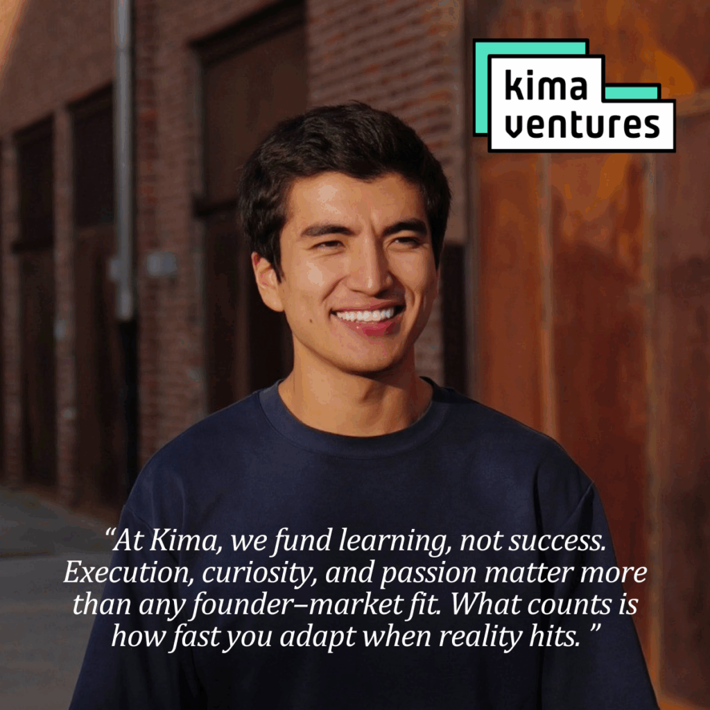 “At Kima, we fund learning, not success. Execution, curiosity, and passion matte